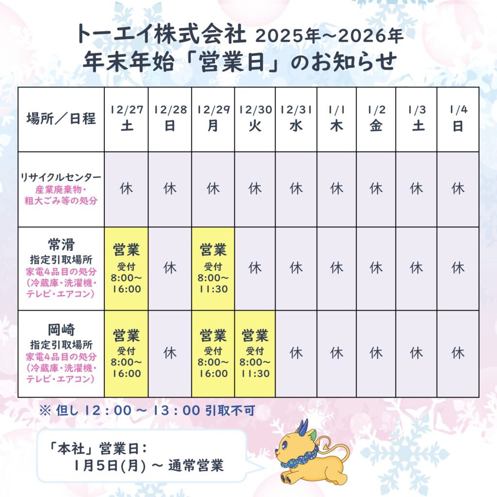 トーエイ株式会社 2025年~2026年「年末年始」営業日について