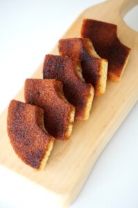 1. 小麦粉不使用。自社生産の玄米粉が作る「しっとり食感」